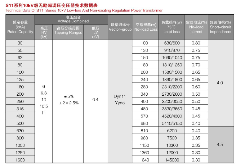 S11~S13-10KV~35KV級低損耗無勵磁調(diào)壓變壓器